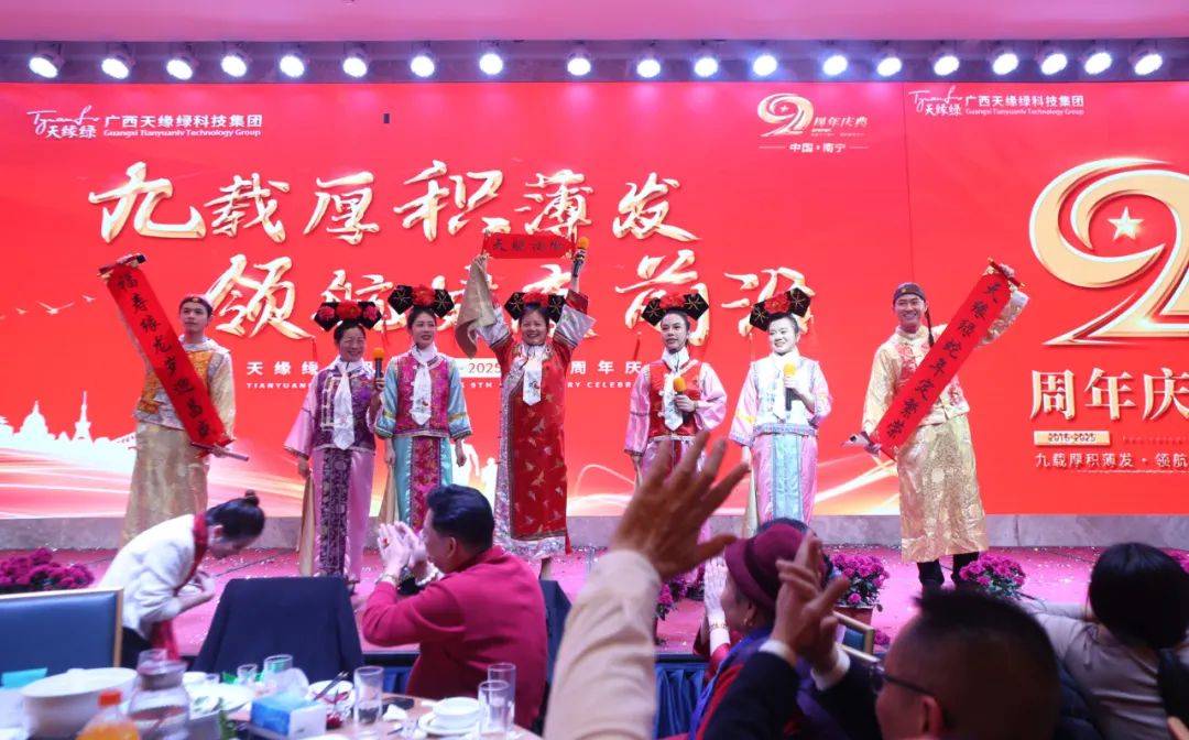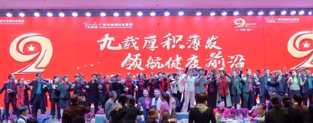 2025年1月13日,南寧沃笙五星級(jí)酒店內(nèi),璀璨的宴會(huì)廳見證了“九載厚積薄發(fā)·領(lǐng)航健康前沿”天緣綠集團(tuán)九周年慶典的盛大舉行。集團(tuán)領(lǐng)導(dǎo)、嘉賓、員工以及來(lái)自全國(guó)各地的經(jīng)銷商伙伴等近千人歡聚一堂,共享這場(chǎng)年度盛宴。