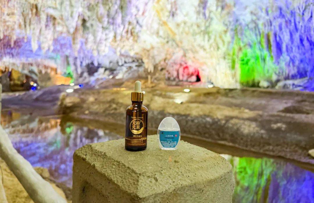 在馬山金倫洞內(nèi),鐘乳石在燈光下流轉(zhuǎn)著七彩光暈,仿佛在訴說著億萬年的自然奧秘。天緣綠集團(tuán)兩款明星產(chǎn)品——天綠元素與沁潤(rùn)明眸舒緩滋養(yǎng)護(hù)眼液,被輕放在溶洞的天然石臺(tái)上。這一刻,科技與自然完成了一場(chǎng)跨越時(shí)空的對(duì)話。
